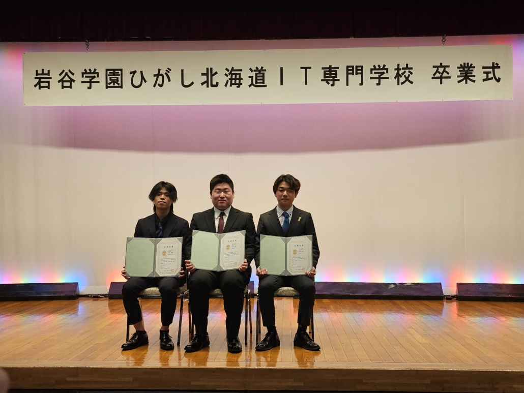 3月13日卒業式が行われ、岩谷学園ひがし北海道IT専門学校の第1期生が立派に羽ばたいていきました!!