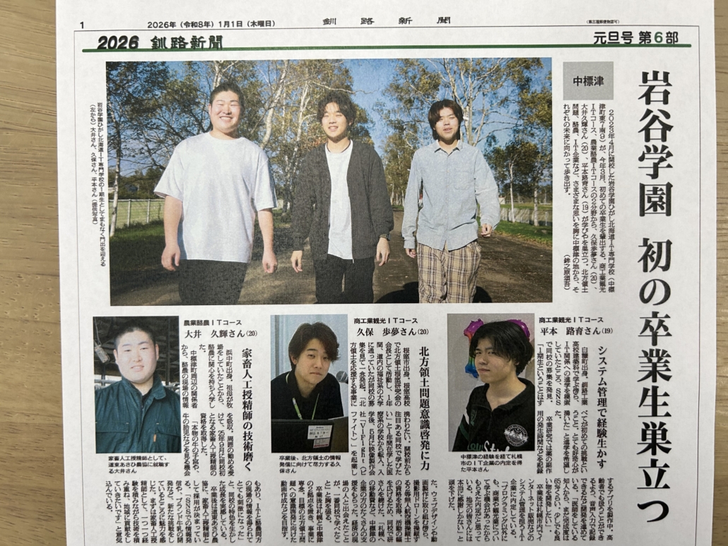 さて、本年1月1日の釧路新聞元旦号にて当校2年生3名の特集記事を掲載していただきました。